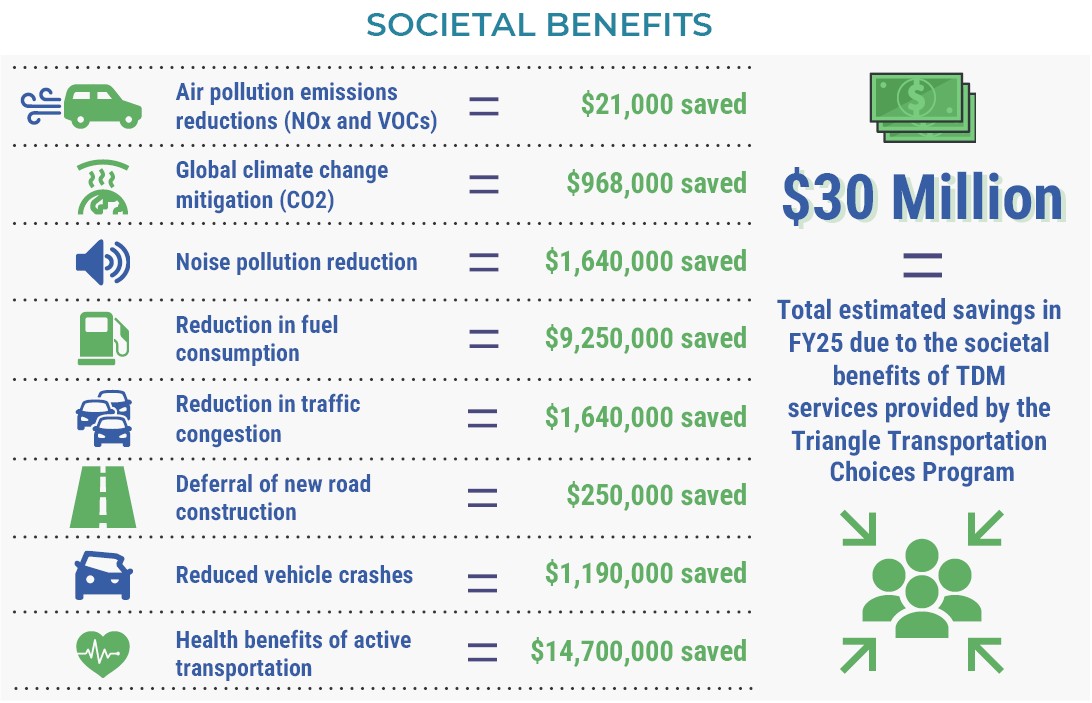 Some highlights from fiscal year 2025 include 5 million avoided vehicle trips and $30 million in savings due to societal benefits. With the program only costing $2.1 million in FY25, the return on investment was over 14 times the cost!